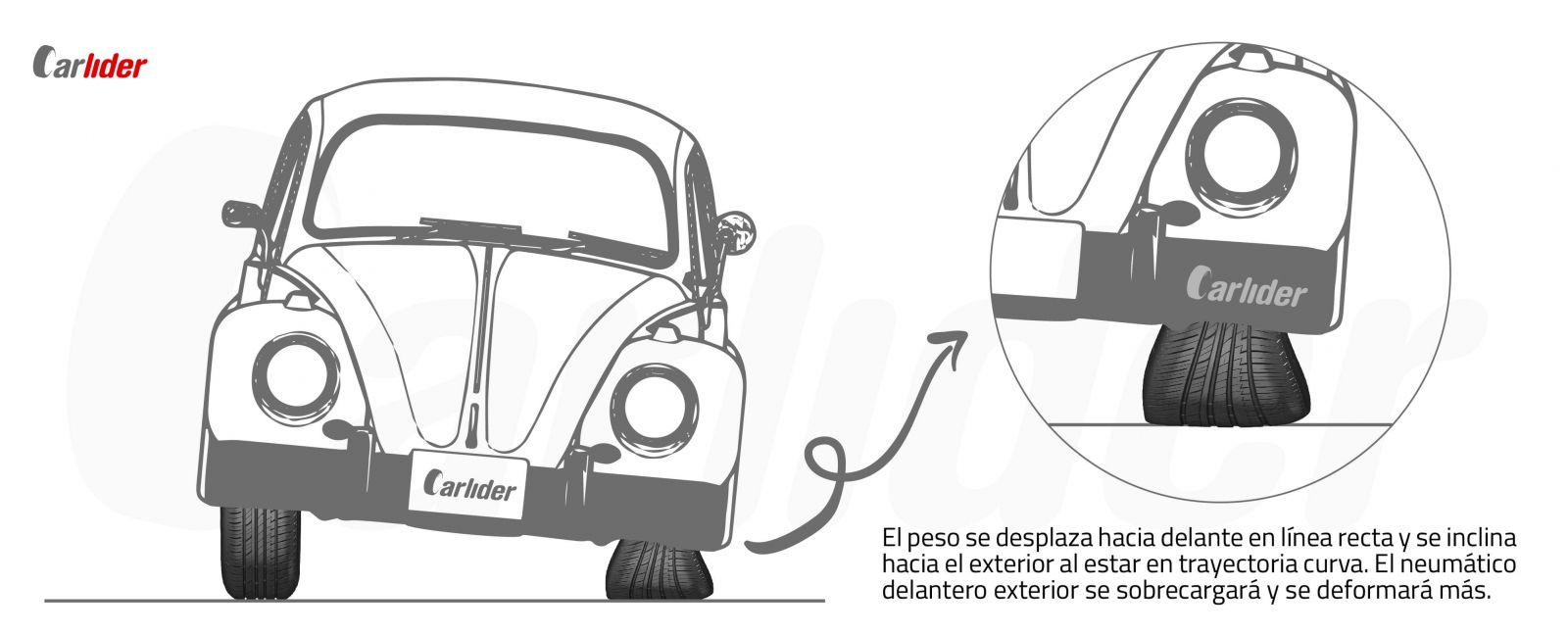 En las curvas pronunciadas, gran parte del peso del vehículo se transfiere a las ruedas del interior, causando un aumento en la deformación y la carga del neumático.