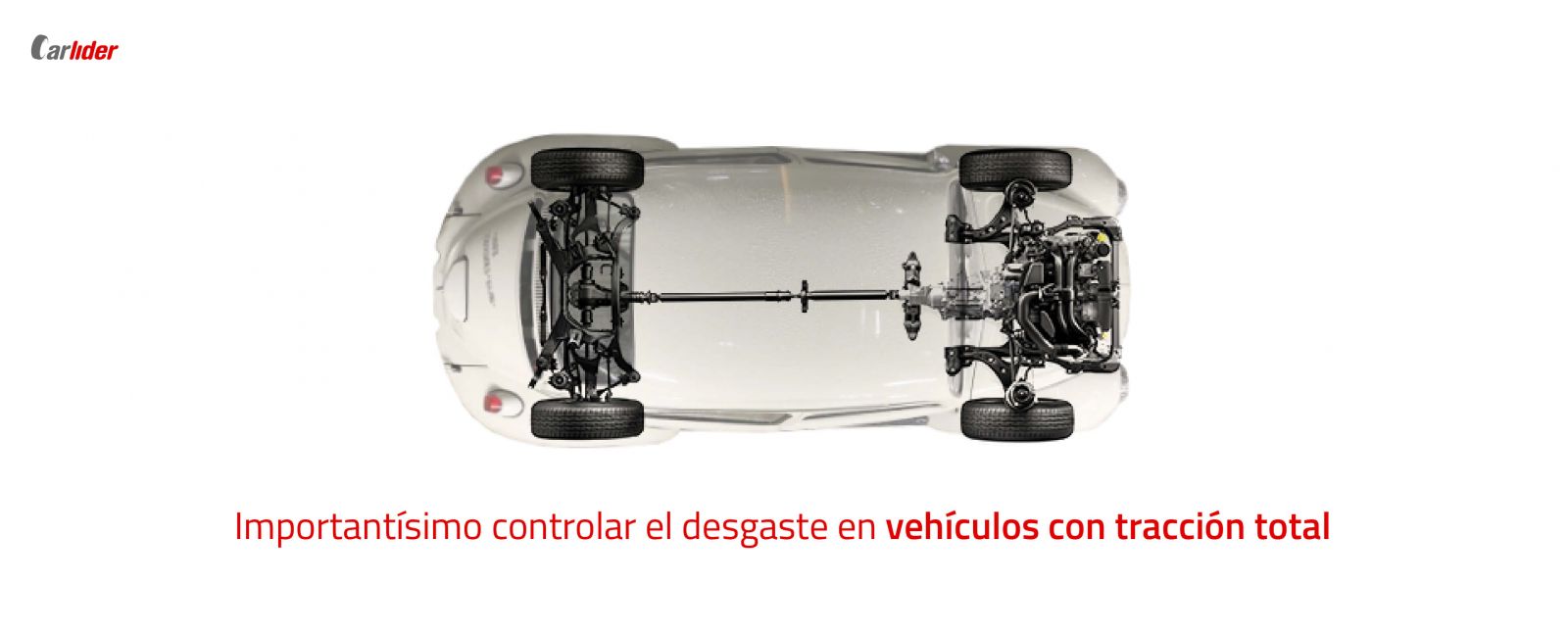 En los vehículos con tracción total debemos plantearnos la permutación con seriedad. Si montamos neumáticos con distinto desgaste en un eje y en otro, el neumático más desgastado dará más vueltas que los otros, provocando que el diferencial central esté funcionando permanentemente y, en la mayoría de los vehículos con tracción total acaba por generar desgastes en este elemento, que es muy caro de reparar.