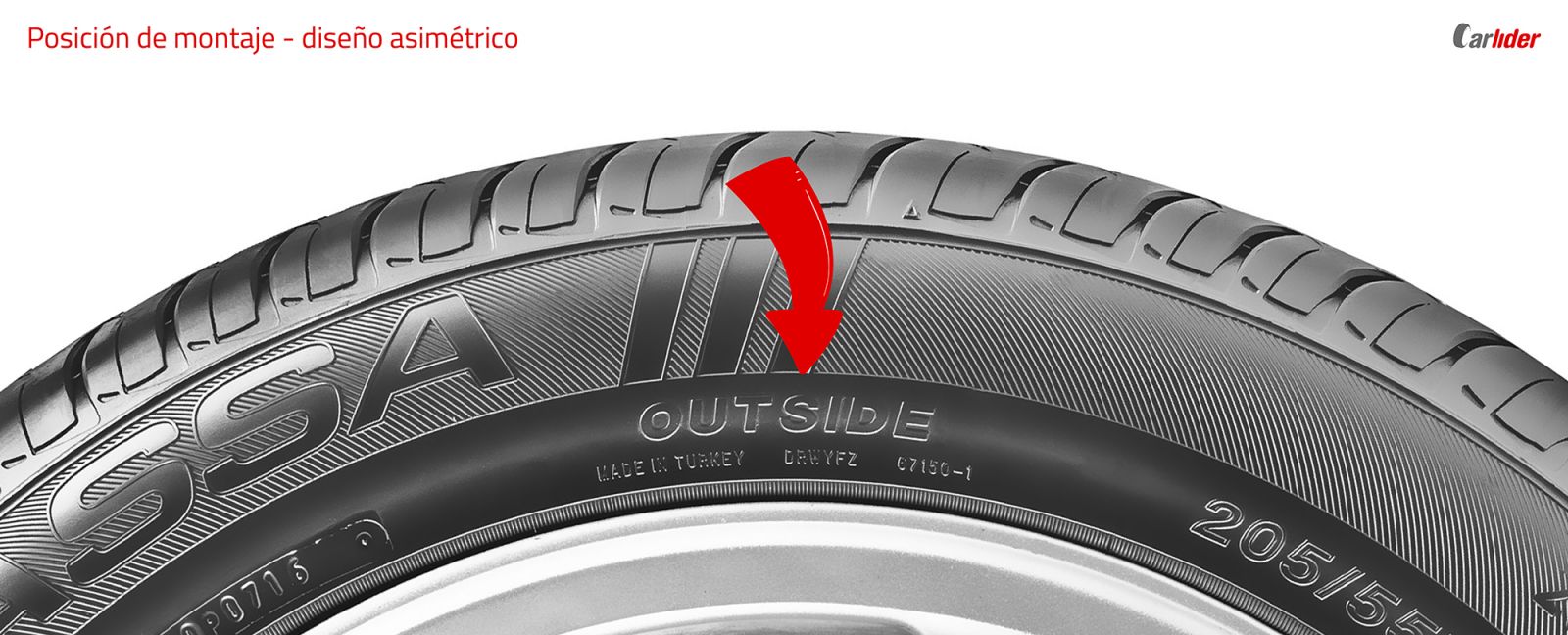 Las partes interna y externa de estos neumáticos son distintas. Con el propósito de evitar errores al colocarlos, incluyen en el flanco los siguientes marcajes: