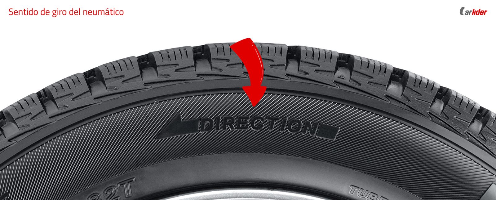 Para distinguirlos y facilitar el montaje, incluyen una flecha —que puede asociarse también a la palabra ROTATION— u otro símbolo distintivo similar. Únicamente has de tomar la precaución de colocar el neumático con la punta de la flecha señalando el frontal del automóvil.