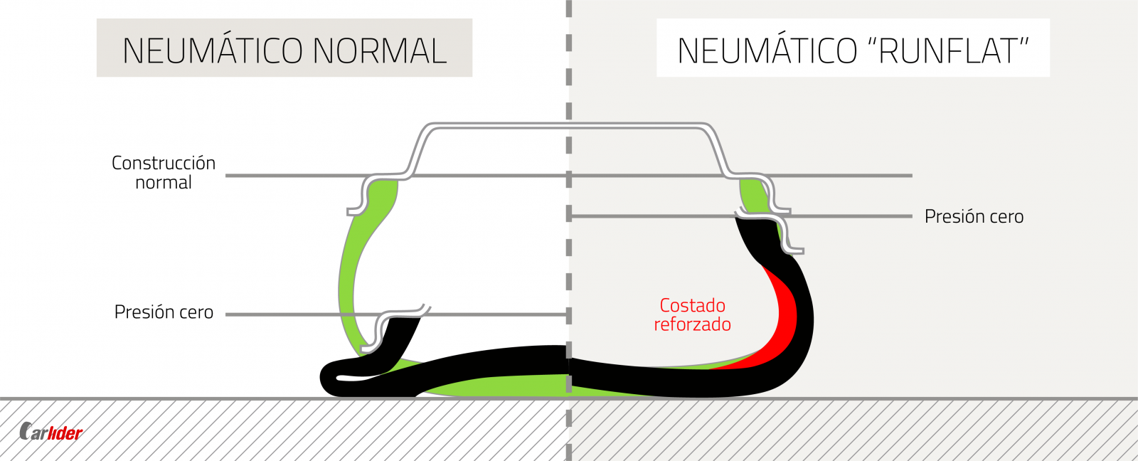 Son neumáticos que vienen montados en su llanta pero sin aire, conforme va cogiendo presión el neumático llega a su forma original. El procedimiento es igual al resto de neumáticos, una vez colocado en el coche debemos inflarlo con el compresor que viene en el vehículo. La ubicación de las herramientas suele estar en el maletero, si tienes dudas, consulta el manual del fabricante.